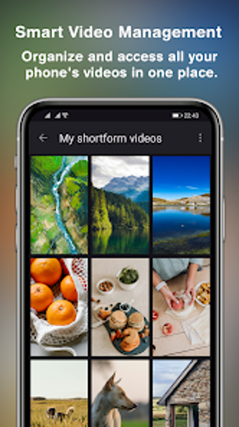 Como o nome sugere, o reprodutor de vídeo curto offline é um aplicativo que permite abrir e assistir vídeos verticais e curtos armazenados localmente de forma contínua. Você não precisa estar conectado, pois funciona offline, e suporta todos os formatos de arquivo populares para máxima compatibilidade. A interface apresenta um layout em grade semelhante a uma galeria de mídia, para que você possa abrir seus clipes imediatamente e deslizar para cima e para baixo entre eles.
